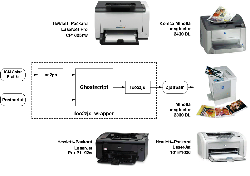 - foo2zjs-wrapper - a shell script (compatible with foomatic) which runs ghostscript and foo2zjs in a pipeline.