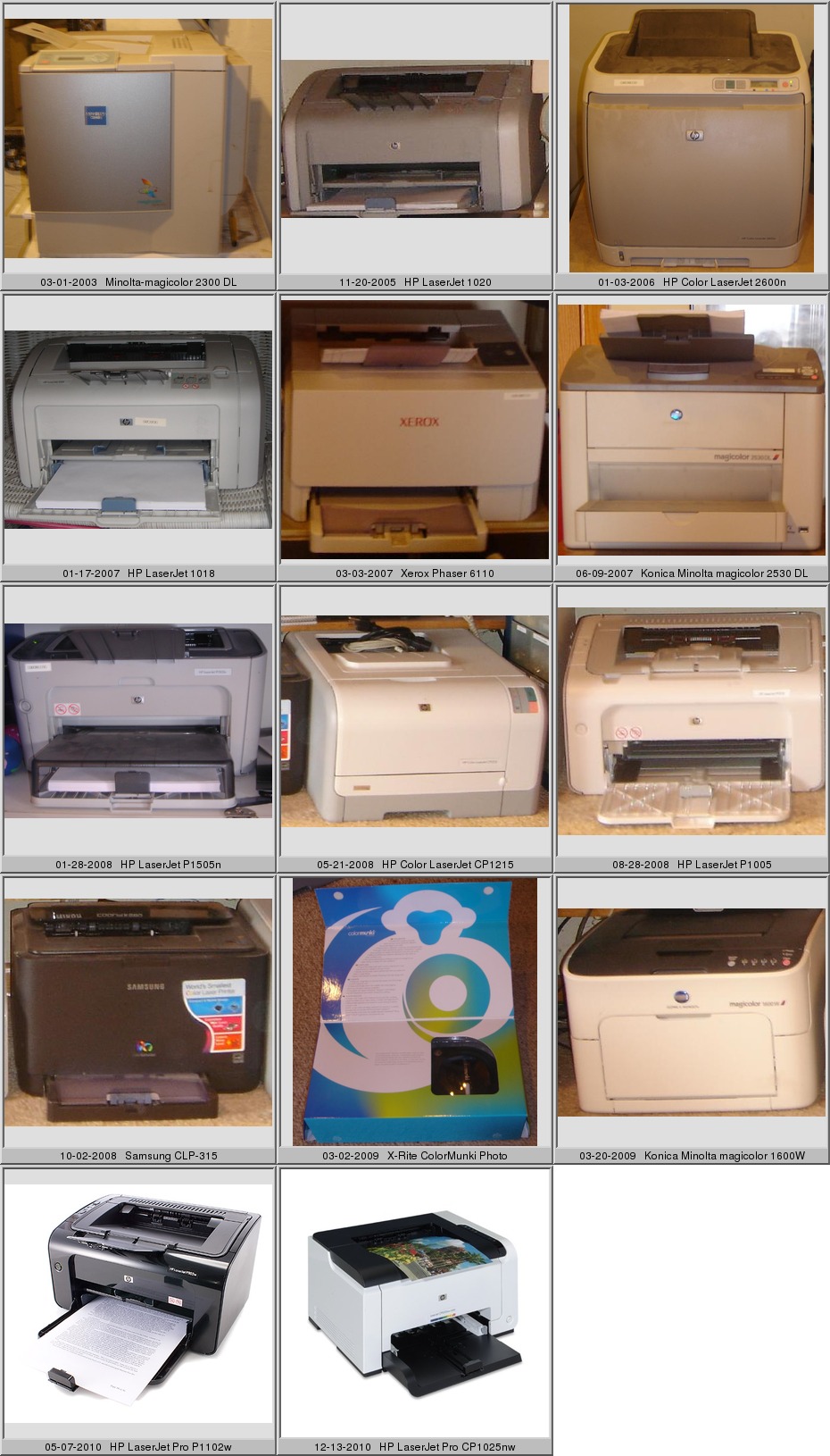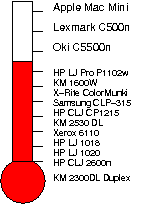 Unsupported Printer Notes HP LaserJet P1005/P1006/P1007/P1008 Supported by my foo2xqx driver HP LaserJet P1505/P2014 Supported by my foo2xqx driver HP LaserJet M1005/M1120/M1132 MFP Supported by my foo2xqx driver HP LaserJet Pro M1212nf MFP Supported by my foo2xqx driver HP Color LaserJet CP1215 Supported by my foo2hp driver HP Color LaserJet 1600/2600n Supported by my foo2hp driver HP Color LaserJet 2605dn Unsupported. Use Postscript Konica Minolta magicolor 2480/2490 MF Supported by my foo2lava driver Konica Minolta magicolor 2530 DL Supported by my foo2lava driver Konica Minolta magicolor 1680MF/1690MF Supported by my foo2lava driver Konica Minolta magicolor 1600W Supported by my foo2lava driver Oki C110 Supported by my foo2lava driver Xerox Phaser 6121MFP Supported by my foo2lava driver Samsung CLP-300/310/315/325/360/365/600/610/620 Supported by my foo2qpdl driver Samsung CLX-2160/3160/3175/3185 Supported by my foo2qpdl driver Samsung ML-1670/ML-1675 Supported by my foo2qpdl driver Xerox Phaser 6110 Supported by my foo2qpdl driver Lexmark C500n Supported by my foo2slx driver Oki C301dn/C310dn Supported by my foo2hiperc driver Oki C511dn Supported by my foo2hiperc driver Oki C810 Supported by my foo2hiperc driver Oki C3100n/C3200n/C3300/C3400n Supported by my foo2hiperc driver Oki C5100n/C5200n Supported by my foo2hiperc driver Oki C5500n/C5600n/C5650n/C5800n Supported by my foo2hiperc driver Olivetti d-Color P160W Supported by my foo2hiperc driver HP Color LaserJet 1500 Supported by my foo2oak driver Kyocera KM-1635/KM-2035 Supported by my foo2oak driver Dell 1355 Supported by my foo2hbpl driver Epson AcuLaser CX17NF Supported by my foo2hbpl driver Epson AcuLaser M1400 Supported by my foo2hbpl driver Fuji Xerox DocuPrint CM205 Supported by my foo2hbpl driver Fuji Xerox DocuPrint M215 Supported by my foo2hbpl driver Fuji Xerox DocuPrint P205 Supported by my foo2hbpl driver Xerox Phaser 3010/3040 Supported by my foo2hbpl driver Xerox WorkCentre 3045 Supported by my foo2hbpl driver Xerox WorkCentre 6015 Supported by my foo2hbpl driver Ricoh SP 112 Supported by my foo2ddst driver Ricoh SP 201 Supported by my foo2ddst driver Minolta/QMS magicolor 2300W/2400W/2500W Try the m2300w driver Minolta/QMS PagePro 12xxW Try Beetman's 1200W driver or Schiller's 1[234]xxW driver Minolta/QMS PagePro 13xxW Try Beetman's 1200W driver or Schiller's 1[234]xxW driver Konica Minolta PagePro 14xxW Try Schiller's 1[234]xxW driver